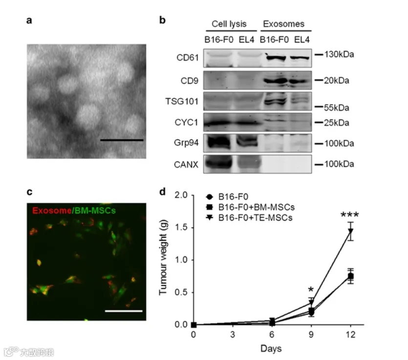 治疗潜力:肿瘤微环境中的间充质干细胞(MSCs)在肿瘤来源外泌体的调控下,表现出促肿瘤特性。研究表明,外泌体可通过传递生物信号(如抗原递呈相关分子),改变受体细胞功能,因此被视为药物递送或基因治疗的理想载体,并为癌症疫苗研发提供新思路。