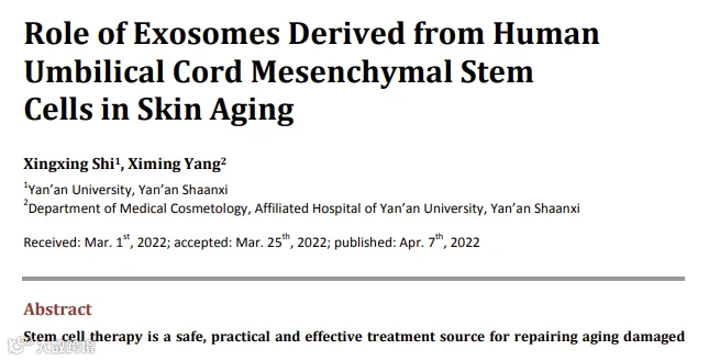 4. Role of Exosomes Derived from HumanUmbilical Cord Mesenchymal StemCells in Skin Aging