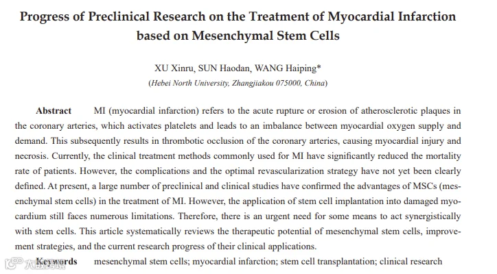 3. Progress of Preclinical Research on the Treatment of Myocardial Infarctionbased on Mesenchymal Stem Cells