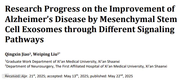 2. Research Progress on the Improvement ofAlzheimer's Disease by Mesenchymal StemCell Exosomes through Different SignalingPathways