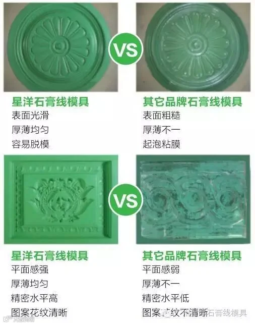 经过多年行业实践证明:玻璃钢材质模具在石膏线模具中具有明显优势,其优点有:表面光滑平整,有耐高温耐潮湿的特征,玻璃钢模具背面都附有牢固的钢架,使模具经久不变形,不收缩。同时,在模具纹理方面,做出来的石膏制品花纹清晰、立体感更强。