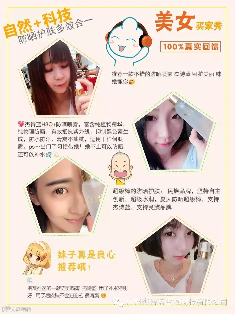 当然,面对高温天气以及强紫外线,进行户外活动,怎能少了杰诗蓝H3O+防晒喷雾!
