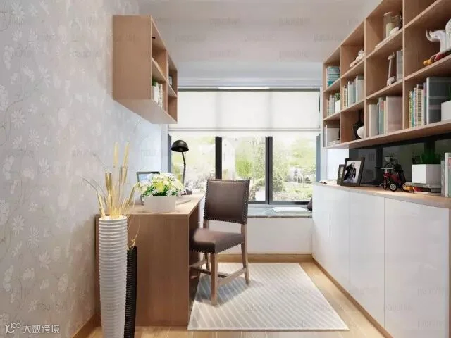而对于书房,不适合用太过于鲜艳的颜色,会让人分散注意,有时还会产生心烦意乱的感觉,最好选择一些安静的浅色调来装扮。