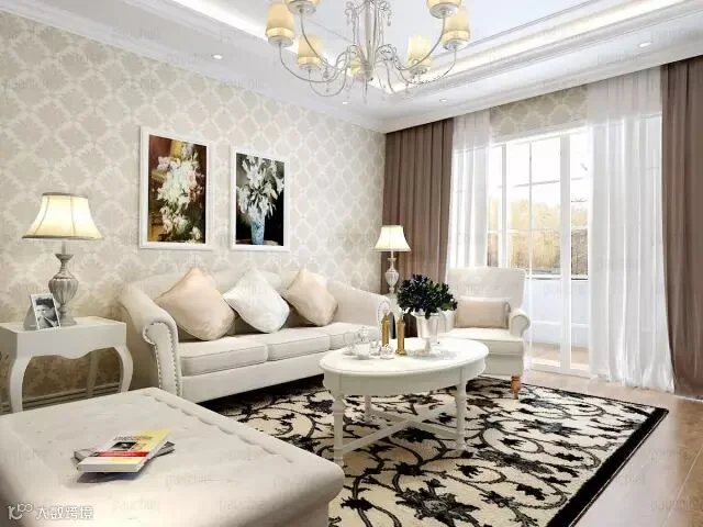 客厅是一个房子的中心位置每个客人都会来的地方,因此在颜色选购上以大众为主,多为米色,淡黄,淡灰。在纹理上竖条优先考虑,其次为片色,花纹。如果家为欧式的风格则可以考虑大花的墙纸。