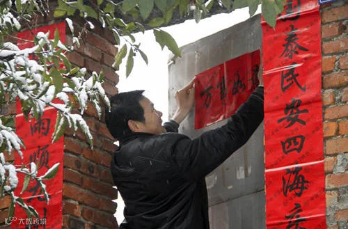一副副对联悬挂墙上,在风中抖动,似跳跃的一簇簇火焰,煞是好看。