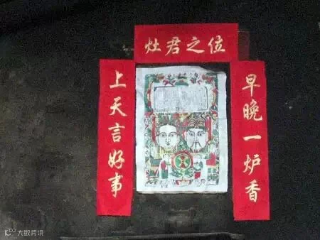 腊月二十三,他讨饭讨到了丁香门上,丁香仔细端量这蓬头垢面的叫花子,认出是前夫张郎,赶紧做了热乎乎的面条端上。只见叫花子接过碗便吃,吃着吃着突然大声嚷道,“怎么里面一块石头,硌得我牙疼”,说着将石头扔掉。孰料一会儿,他又从嘴里抿出一根细发,那长发越抻越长,他用手慢慢地摩挲着,心里很纳闷,他知道丁香的长发在家乡是出了名的,“莫非这头发是我家丁香的?对,一定是她的!”于是他大声呼唤丁香的名字。此时一旁的丁香早已泪流满面,说:“你个穷鬼,我给你的金子你当成石头扔掉了,真是穷命。”原来,丁香念旧情,盛面条时故意在碗里放了个金币,而且薅下一根头发缠在上面。张郎羞愧难当,一头碰死在锅台上。后来,玉皇大帝封他做了灶王,每年腊月二十三,灶王爷要到玉帝那里禀报人间善恶,家家要送灶神,在灶口上摆上一碗面条、一碟糖瓜、一碟枣、一碟马草以及香、蜡、纸、括等祭品,嘴里念着“灶王爷爷上西天,上天言好事,下界保平安”的口诀,将灶口上的旧灶祃画像揭去,再将新灶祃画像姑且用搁板压上(新灶祃画像等到三十晚上请神时才贴上)。过去,木版刻制的灶祃水印神像分大小两种,大灶祃上印着三人,灶王居中,左为丁香,右为海棠。小灶祃上印着两人,左为灶王,右为丁香。