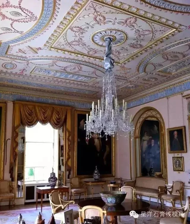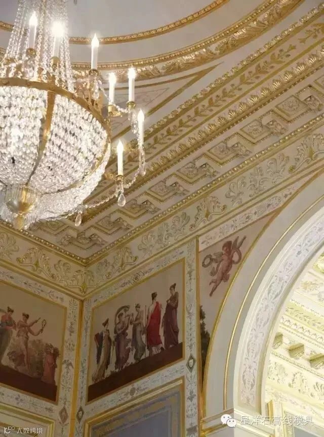 在欧式风格中,华丽的装饰和造型是必不可少的,石膏线、罗马柱、墙面装饰及吊灯等都能起到举足轻重的作用。欧式风格还讲究空间的对称性,以石膏线为例,花型精美并呈几何对称排列,是空间中一道靓丽的风景线。简直不能想象,如果如果没有石膏线,多少宫殿别墅将黯然失色!