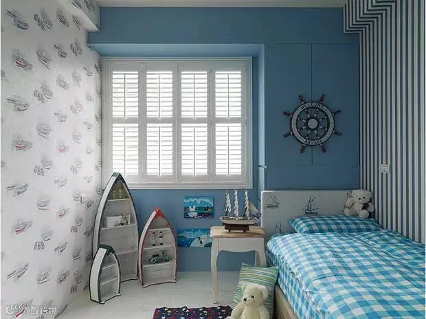 ▲清纯可爱蔚蓝色儿童房,帆船装饰、仿佛徐徐海风吹来