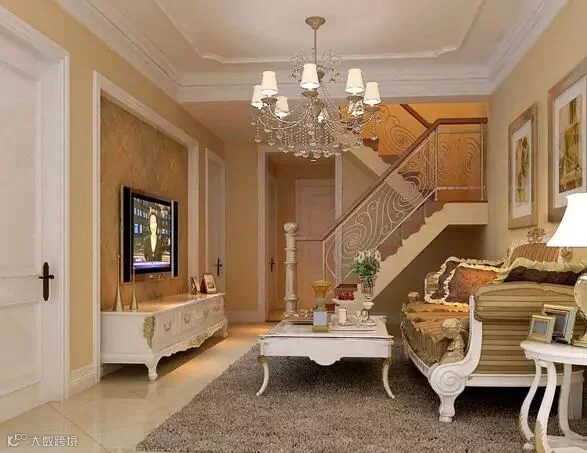 这款石膏线吊顶效果图中把吊顶的部分用石膏线来勾勒出不同的花纹,不同的图案。客厅顶部的花纹和地毯的花纹图案有一个相互映衬的特点,还有水晶吊灯带来的浪漫。让你在交谈的过程中一直有着愉快的心情。无论是家人的聚会,还是朋友的来访,都有了一个舒适的交谈空间。