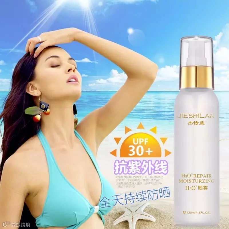 杰诗蓝H3O+防晒喷雾,超强物理防晒,有效阻挡紫外线,补水美白,晒后修复。可喷于肌肤任何部位,肌肤清爽湿润,防水防汗不油腻。防晒无死角,令你夏日过后依然拥有白嫩肌肤!