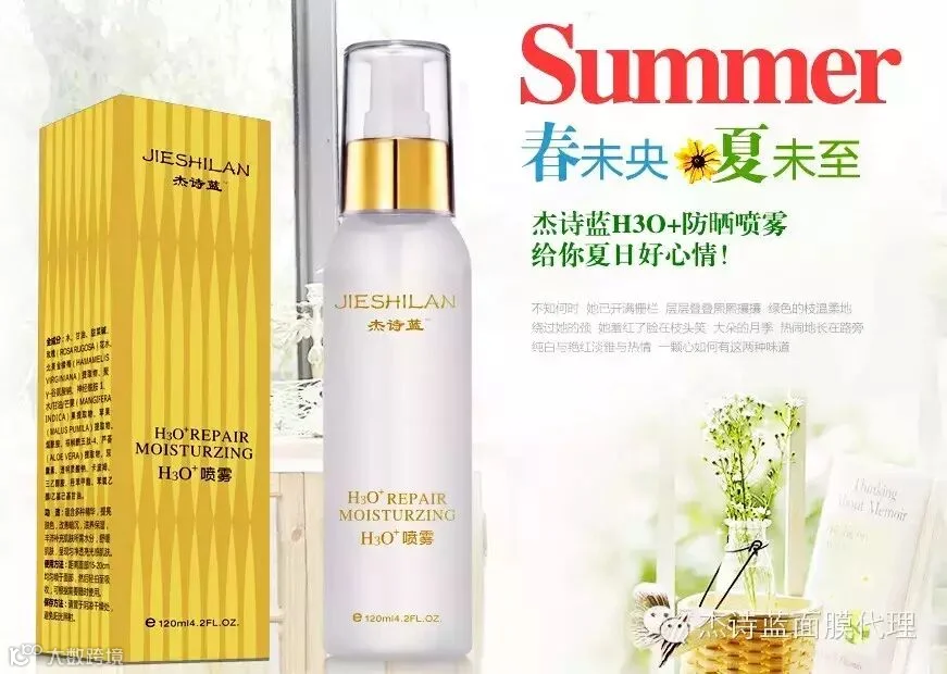 最烦又热又燥的夏天了,不想出门。出门怕被晒,呆在家里又无聊,心情怎么能好?不用烦,杰诗蓝帮你赶走坏心情。 杰诗蓝H3O+防晒喷雾,萃取大自然芒果、芦荟、玫瑰花、甜菜碱等提取物精华,带你进入清新舒爽的世界,让你感受天然防晒呵护。