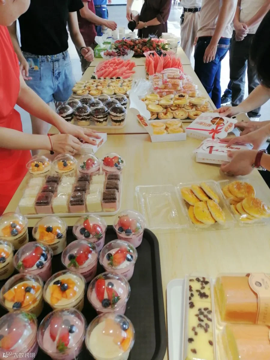 当日上午一上班,全体员工齐聚餐厅,公司准备了各类点心、甜品、水果、饮料。大家一起享受美味,共渡开心一刻!