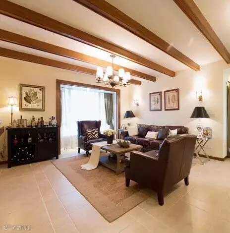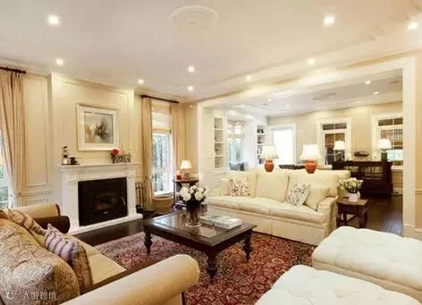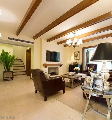 在美式风格中客厅作为待客区域,一般要求简洁明快,同时装修较其它空间要更明快光鲜,通常使用大量的石材和木饰面装饰。