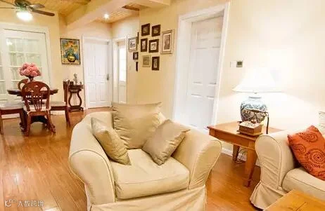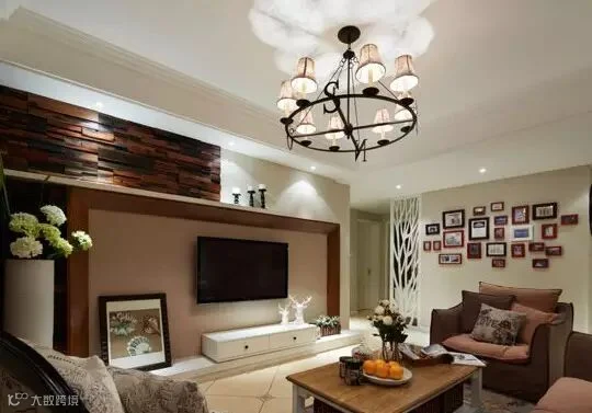 布艺沙发温软厚实,编织地毯让来客脚感舒适,铁艺吊灯突出的效果也很满意,散漫的灯光投射到天花板上,点点光斑带来温柔的气息。