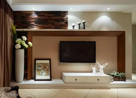 将电视机直接砌入到客厅墙内,像美剧里一样,在电视机下方做了一个壁炉,中间简单地设计了一个隔断,营造出宽敞明亮,视野开阔的空间。这样既不会看起来太过单调,又可以适当放一些小饰品做装饰,瞬间有了些欧美范儿。