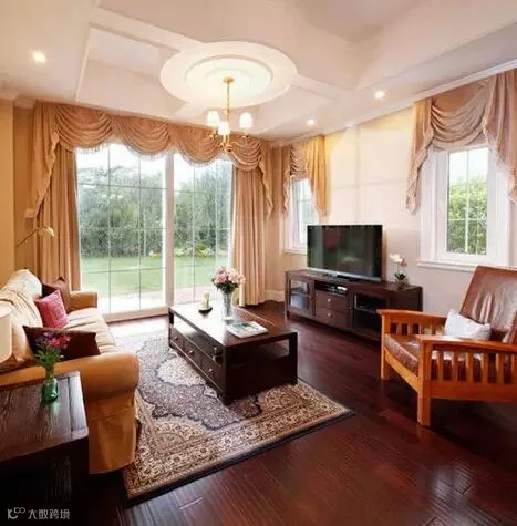 客厅的色调运用显得客厅整体非常的浪漫与庄重,这种色调里映射出来的儒雅,是含蓄的中国人永远欣赏的颜色。