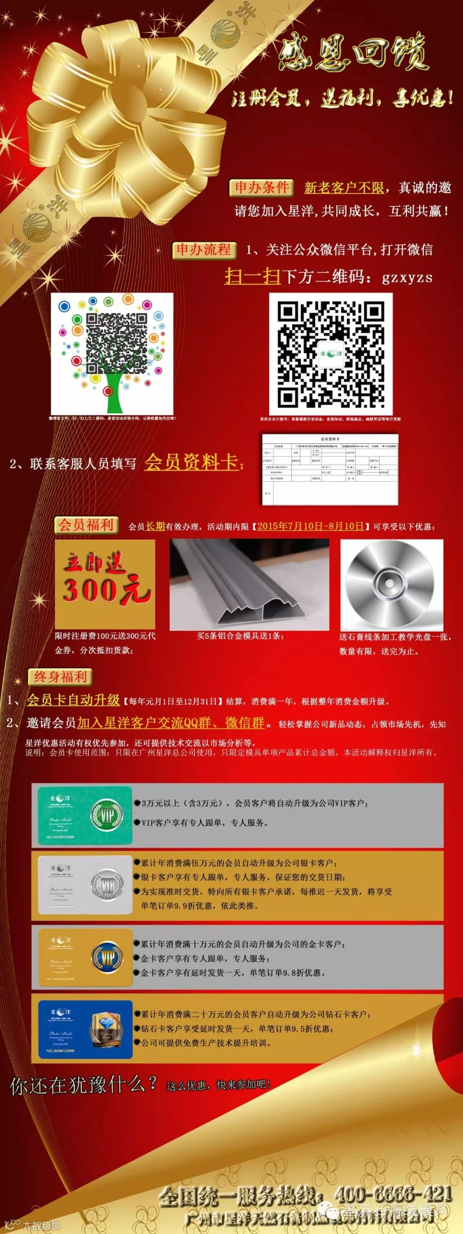 3、会员卡使用范围:只限在广州星洋总公司使用,只限定模具单项产品累计总金额。