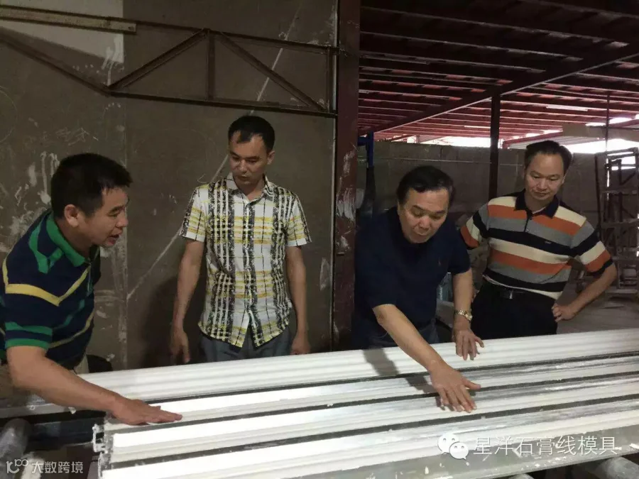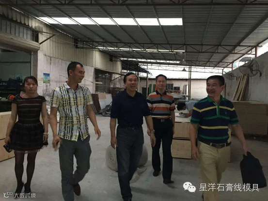 星洋公司董事长邱海云先生,亲自热情接待了来访人员。在邱董的带领下,走进生产车间,首先参观了星洋公司自主研发出的专业加工石膏线条流水线设备,邱董向来访人员详细的讲解了流水线设备的投产运营情况以及配套专利机械模具的优点。随后来到石膏艺术制品晾晒区和玻璃钢模具加工车间参观。展示了星洋公司十余年来,不断创新自主研发的辉煌成果。