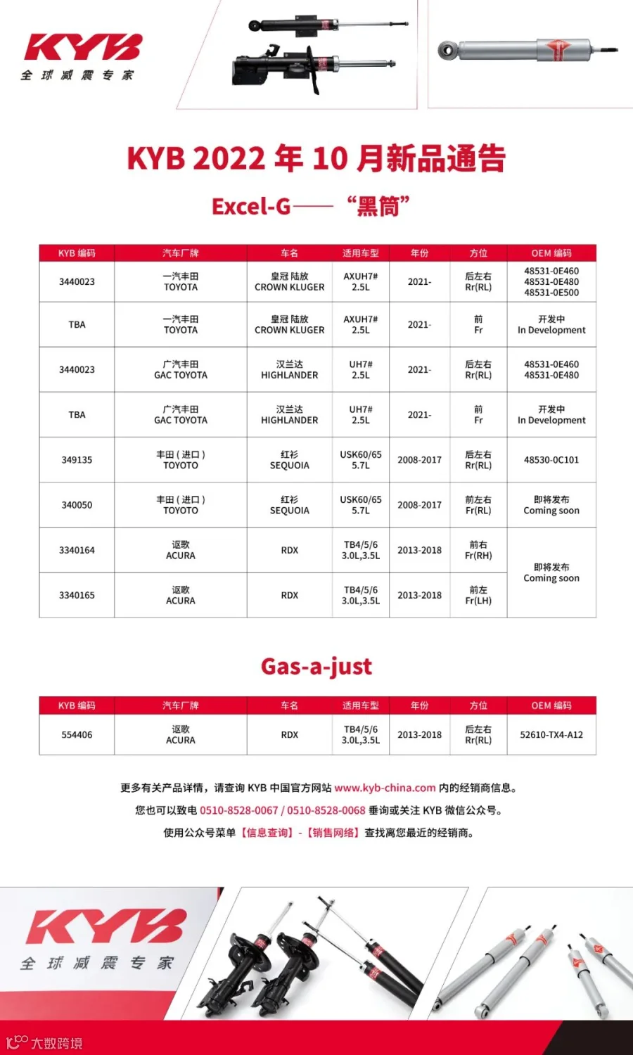 KYB 2022年 10月新品通告(Excel-G & Gas-a-just) KYB减震器
