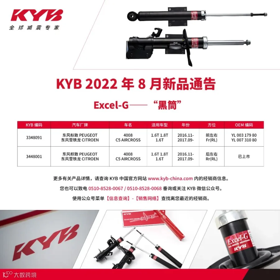 KYB 2022年 8月新品通告(Excel-G) KYB减震器