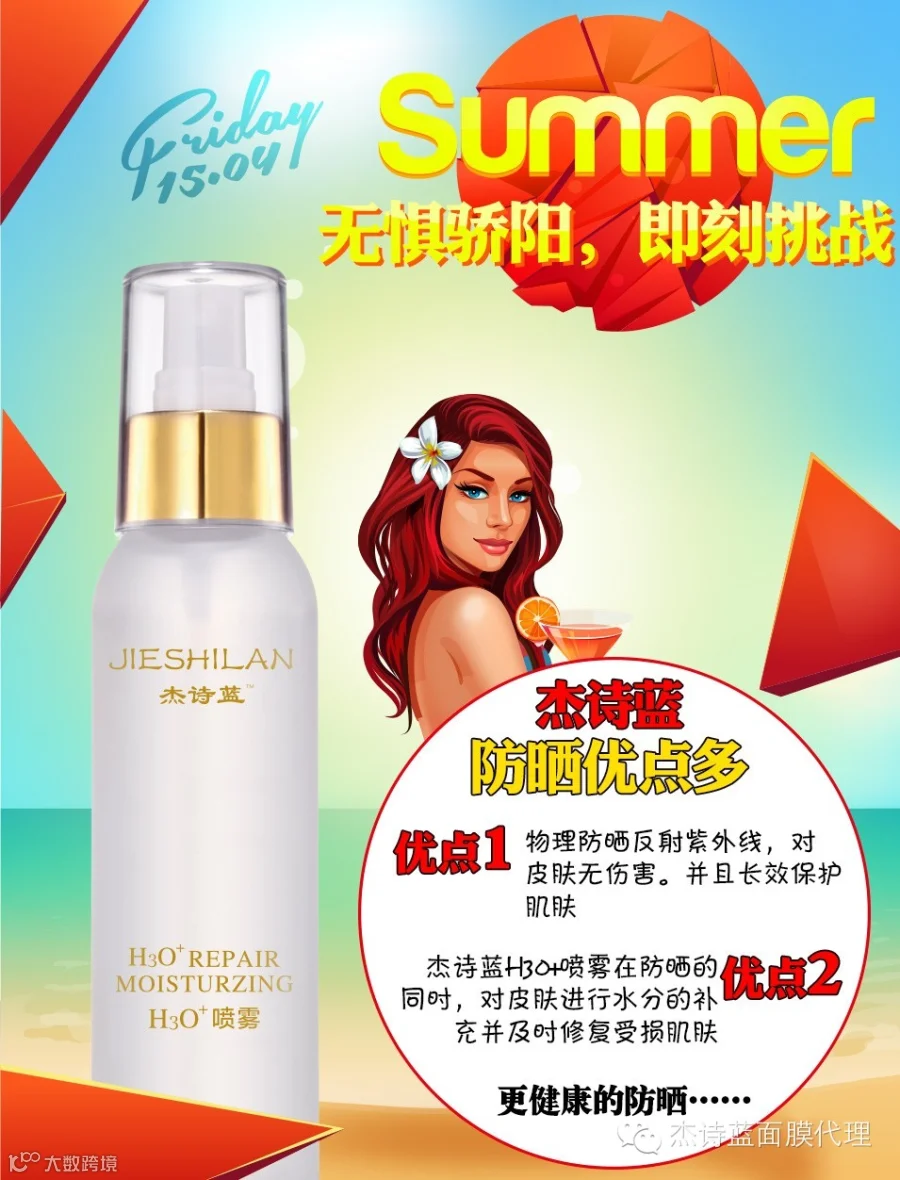 杰诗蓝H3O+防晒喷雾,给你不一样的防晒体验。