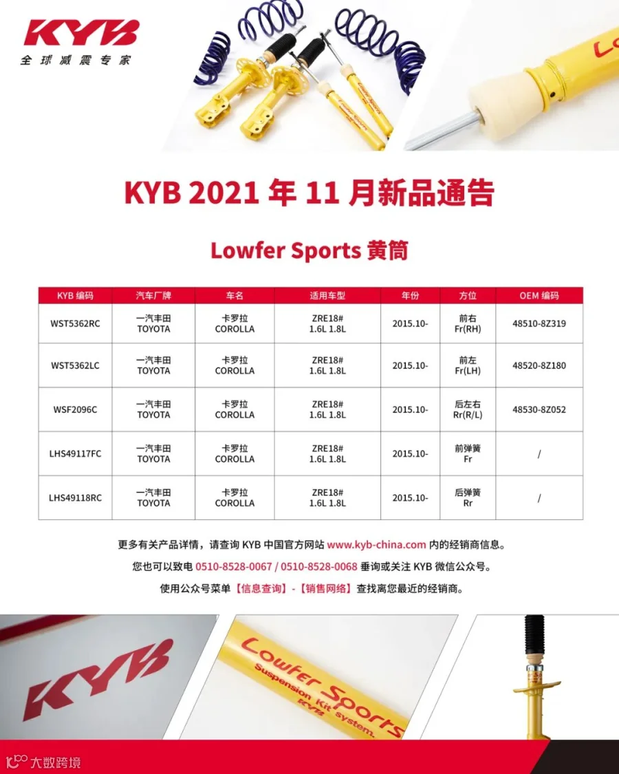 更正:KYB 2021年 11月新品通告(Lowfer Sports) KYB减震器