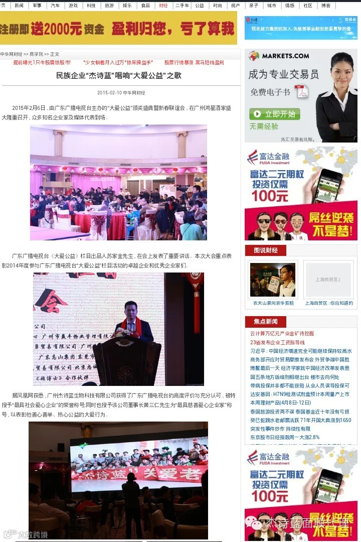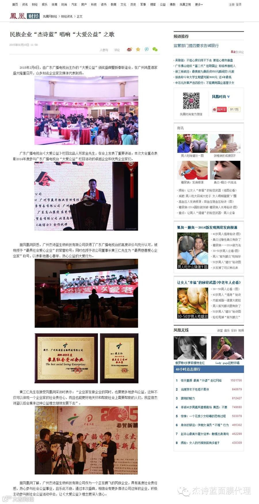 据凤凰网了解,广州杰诗蓝生物科技有限公司作为一个正在腾飞的民族企业,具有高度社会责任感,热心参与社会公益事业,且乐此不疲。通过本次盛典,相信会有更多像该公司这样的企业,积极主动参与到社会公益活动中去,让《大爱公益》理念更深入信心。