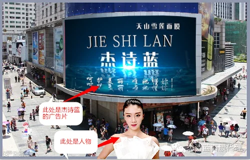 4.在杰诗蓝广告播出时抓拍合影(示例图如下)播出时间为2014.11月5日-12月3日,每隔10分钟播放一次,播放时长为15秒钟;