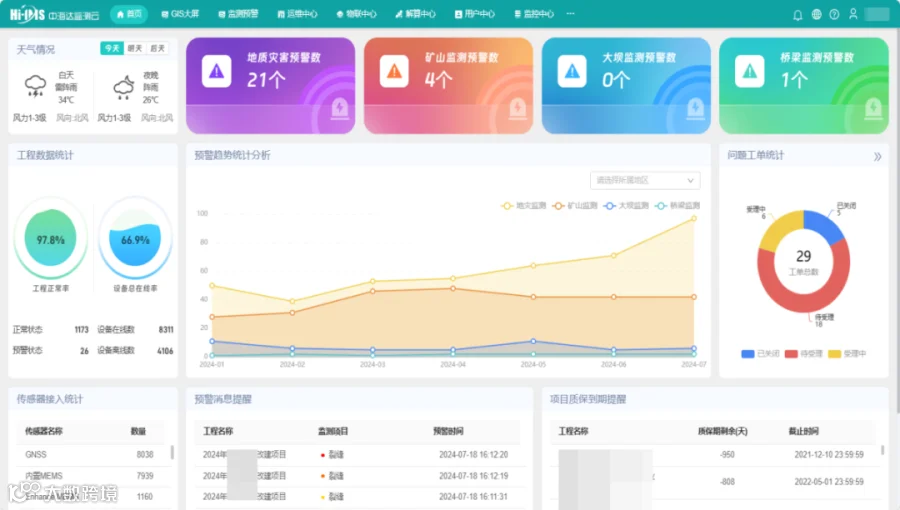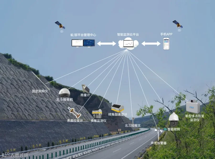 基于先进的监测技术和传感器设备,结合监测云平台,能够实时监测公路边坡的位移、形变、地下水位等参数及异常变化,实现监测预警、降本增效、智慧管养。