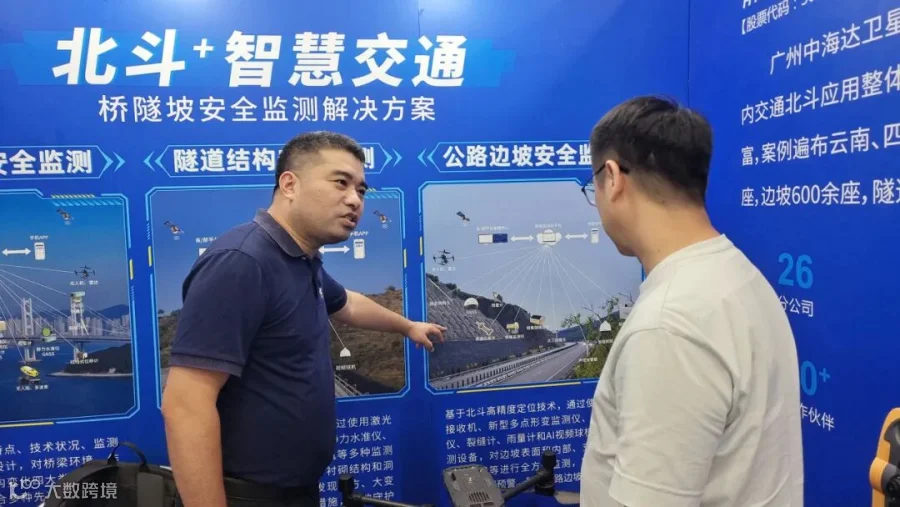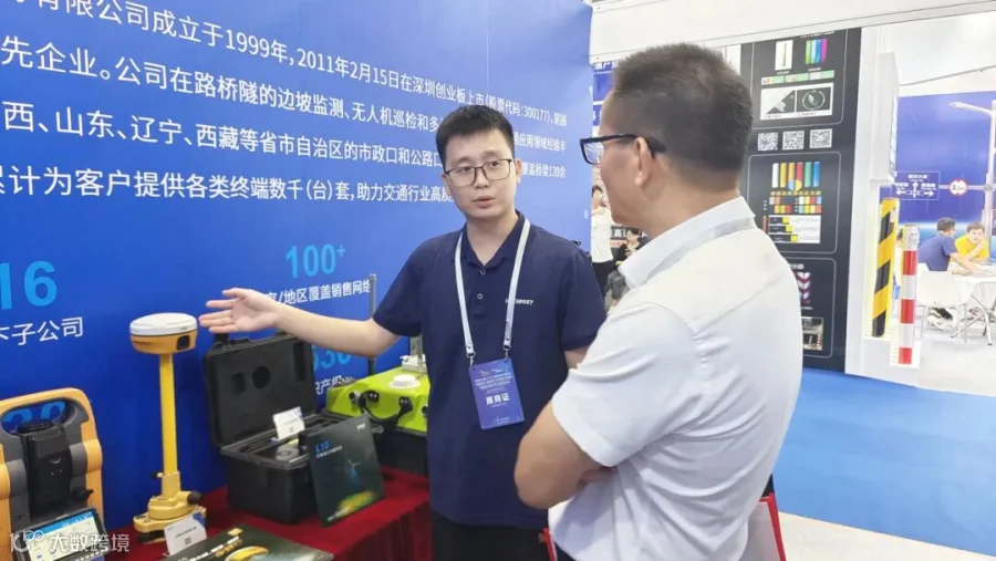 ▲中海达工作人员向参展嘉宾介绍交通行业产品和解决方案