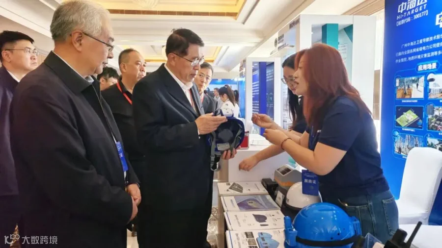 ▲中国能源研究会理事长史玉波(左二)、中国卫星导航定位协会常务副会长赵继成(左一)莅临中海达展位指导