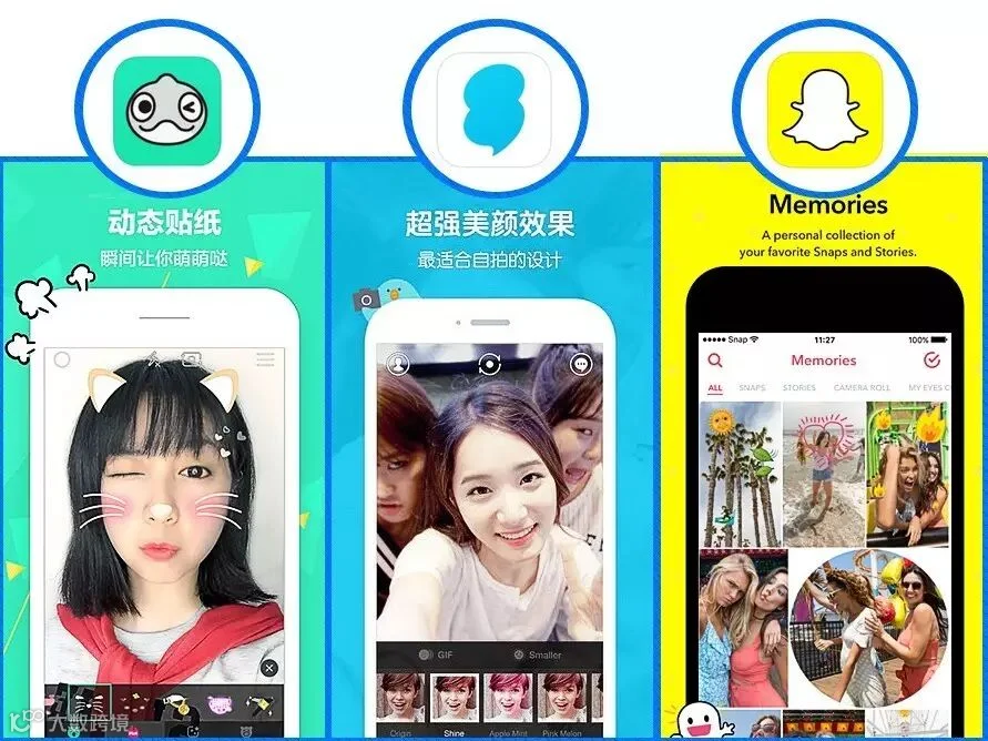 这三个软件都是相同类型的,可以在人脸上叠加动态效果的贴图和道具,拍摄短视频和照片,秒变萌妹子。