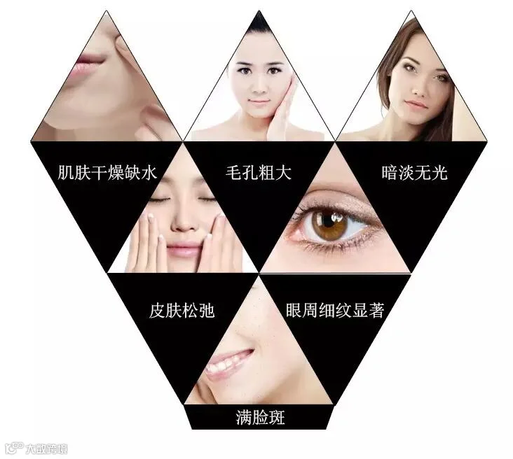 肌肤干燥暗黄、毛孔粗大、细纹增多
