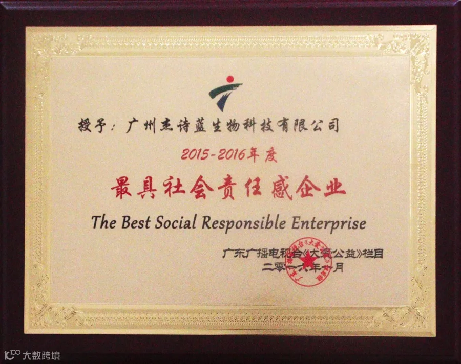 颁奖典礼上,广东杰诗蓝集团荣获“2015年度最具社会责任感企业”。