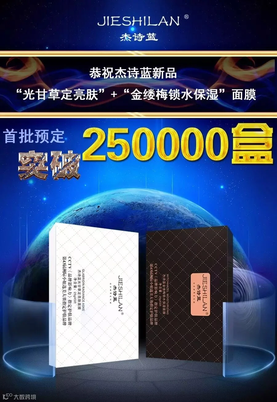 杰诗蓝与法国香奈儿国际集团共同开发的新产品“光甘草定亮肤”+“金缕梅锁水保湿”面膜首批预定已突破250000盒啦!