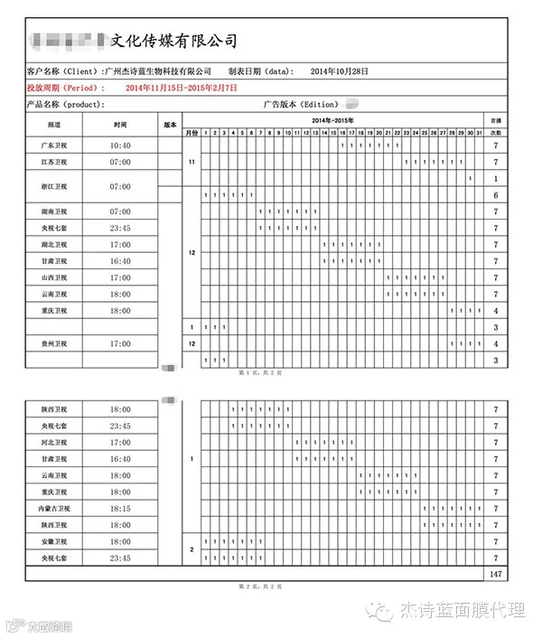 杰诗蓝--天山雪莲面膜千万广告,15家省级电视台投放。广东卫视首播正式开始啦!时间为:2014年11月16--22日,每天10:40分播出。广东卫视网络平台同步直播!敬请大家提前十分钟收看,具体播出时间以广东广播电视台为准。如有变动,另行通知。