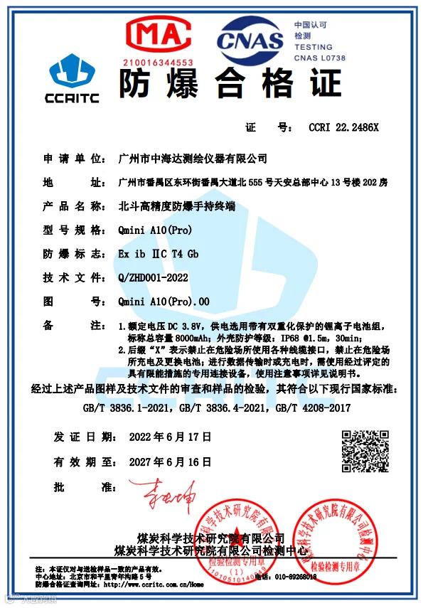 ▲左右滑动查看中海达北斗高精度终端防爆合格证