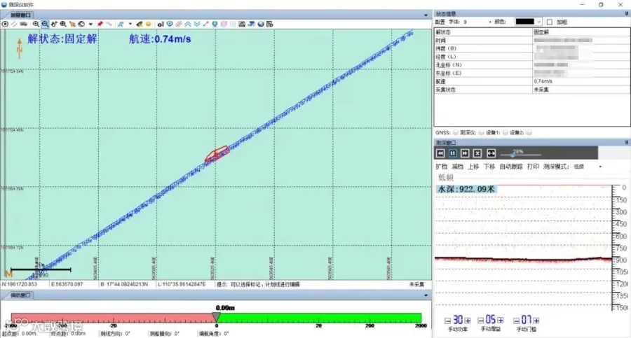 中海达HD-MAX DF双变频测深仪利用其低频声波发射能量大、衰减小、穿透力强的特性,搭载K20高精度分体式GNSS接收机(具备中海达Hi-RTP星站差分功能),为测深仪提供高精度定位,最终成功刷新1940米大水深测量记录,成为国产单波束测深仪的新一代深水探路者。