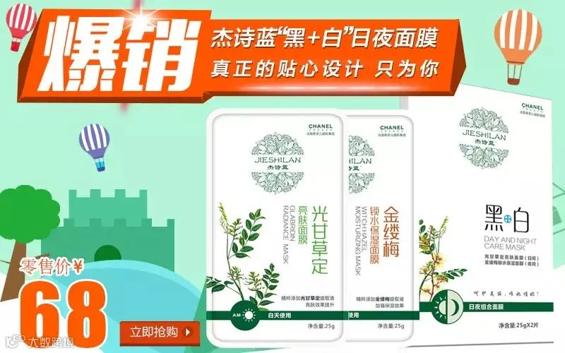 杰诗蓝“黑+白”日夜组合面膜:光甘草定亮肤面膜,日用美白亮肤;金缕梅锁水保湿面膜,夜用锁水保湿。
