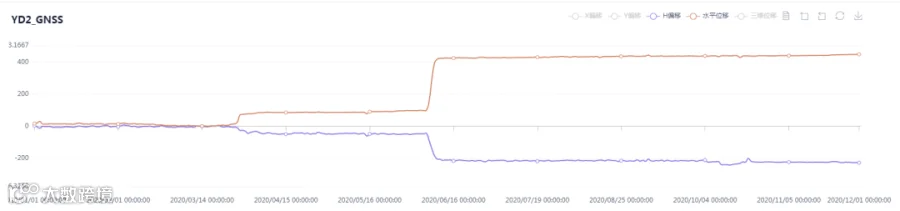 2020年3月27日-29日及6月6日-10日,清远市出现强降雨。其阳山县太平镇太平村的滑坡2号监测点,在滑坡左侧滑壁靠近前缘处安装有由中海达研制的北斗GNSS监测站,该北斗GNSS监测站分别于3月30日监测到表面位移累计变化量46mm, 6月9日累计综合位移变化量达到320mm。