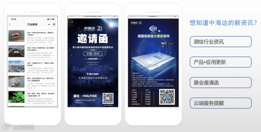 想抢先知道中海达的全新动态?来小程序的主题活动、集团公告栏目,最新资讯、行业展会及论坛精彩内容等,中海达为你一一呈现!