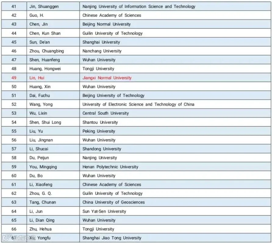 林珲院士现任江西师范大学地理与环境学院院长,鄱阳湖湿地与流域研究教育部重点实验室主任,1995年当选国际欧亚科学院院士,2020年当选英国社会科学院院士。林珲院士从事地理信息科学研究30余年,主要研究领域包括多云多雨环境遥感、虚拟地理环境、空间综合人文学与社会科学。入选全球前2%顶尖科学家榜单,表明林珲院士在Geological & Geomatics Engineering领域的研究具有国际一流学术影响力。