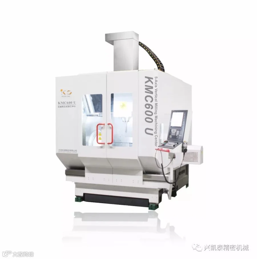 KMC600 UMT五轴铣车复合立式加工中心的结构采用改良的龙门框架设计,三个轴在刀具上,两个旋转轴在工件上,达到最优的主轴支撑,数控回转摆动工作台实现双壁支撑,Y轴采用四导轨支撑和位于中心的主驱动,A轴摆动角度为-130°~ +130°。环形刀库与机床床身融为一体,结构简单、节省空间。