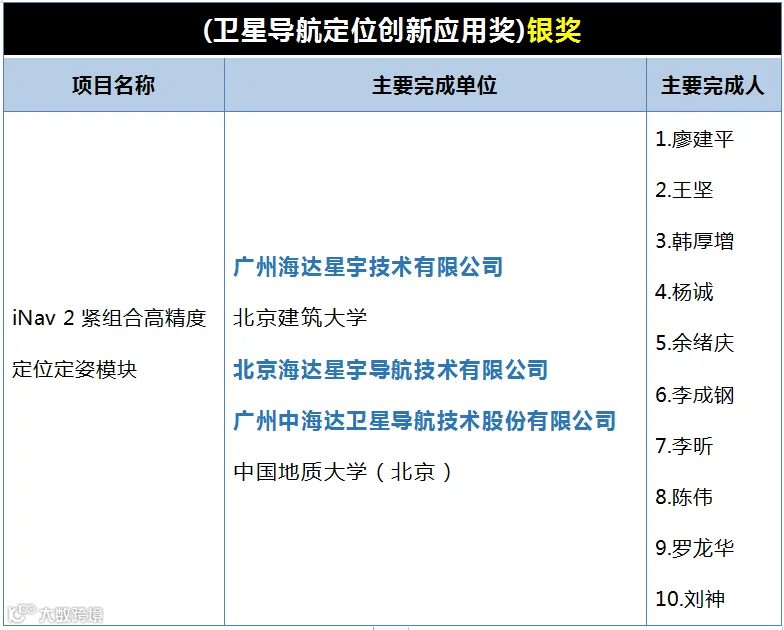 ▲ “主要完成单位”中加粗单位为中海达及其所属子公司