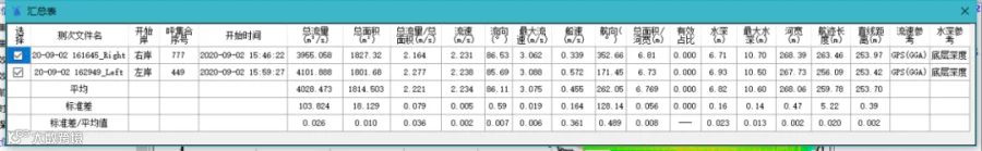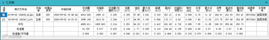2020年9月2日下午,采用RP600型ADCP进行了流量测验,该测验包含两个测回,4个有效半测回数据。各测次的起始时间与记录的数据文件如下表所示: