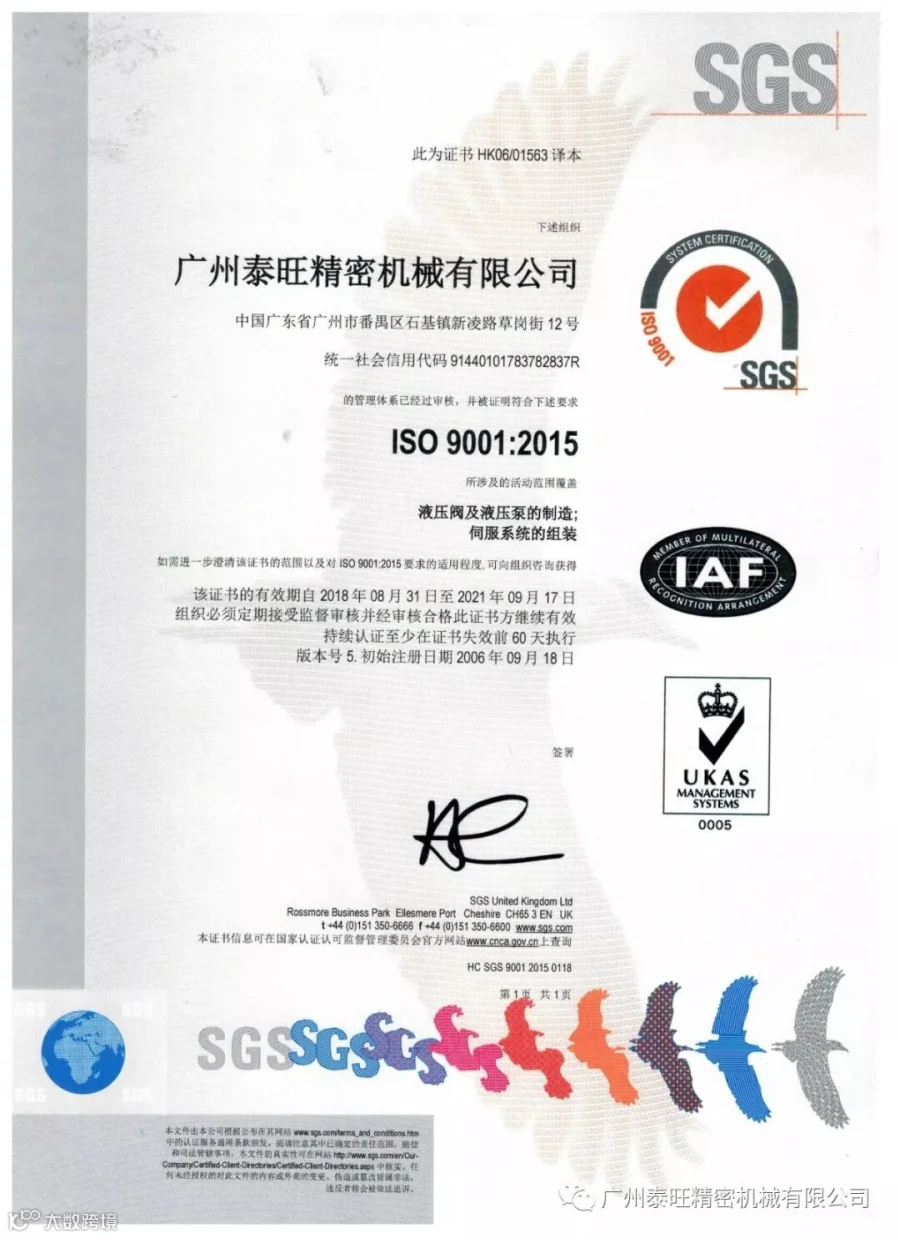 此次SGS认证主要涉及到公司的基本信息、贸易能力、生产能力和质量管理、产品设计和研发能力以及售后服务、财务信用和工作环境等多个方面,主要是液压阀和液压泵的制造,伺服系统的组装,可谓是对集团公司的一个全方位综合检测。