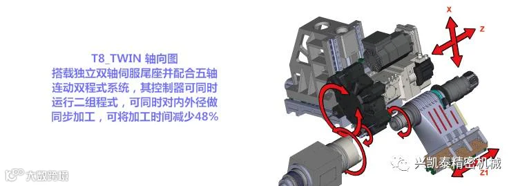 T8系列搭载光纤多工智慧型三菱控制器并配合12刀伺服刀塔或动力刀塔,即使是高复杂性零件也可有效率的加工。