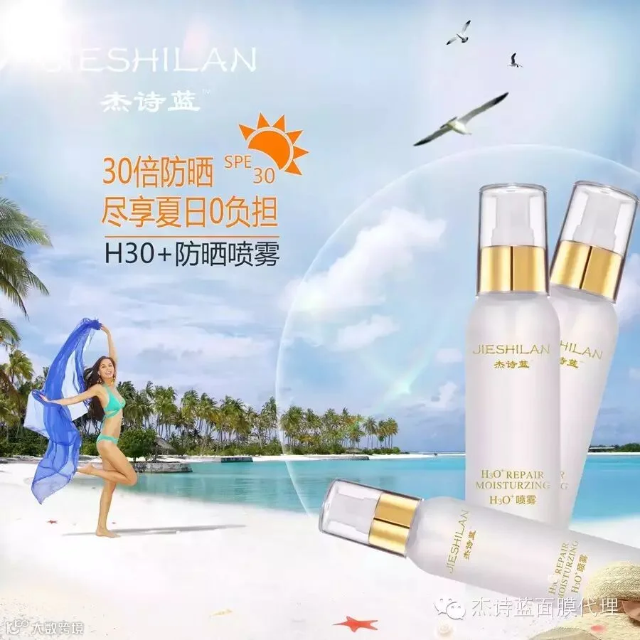 杰诗蓝H3O+防晒喷雾,专业防晒,长效抵抗紫外线,一款兼具防晒、美白、修复的防晒喷雾,防晒指数为SPF30,有效阻隔紫外线,保护肌肤不受阳光侵害。