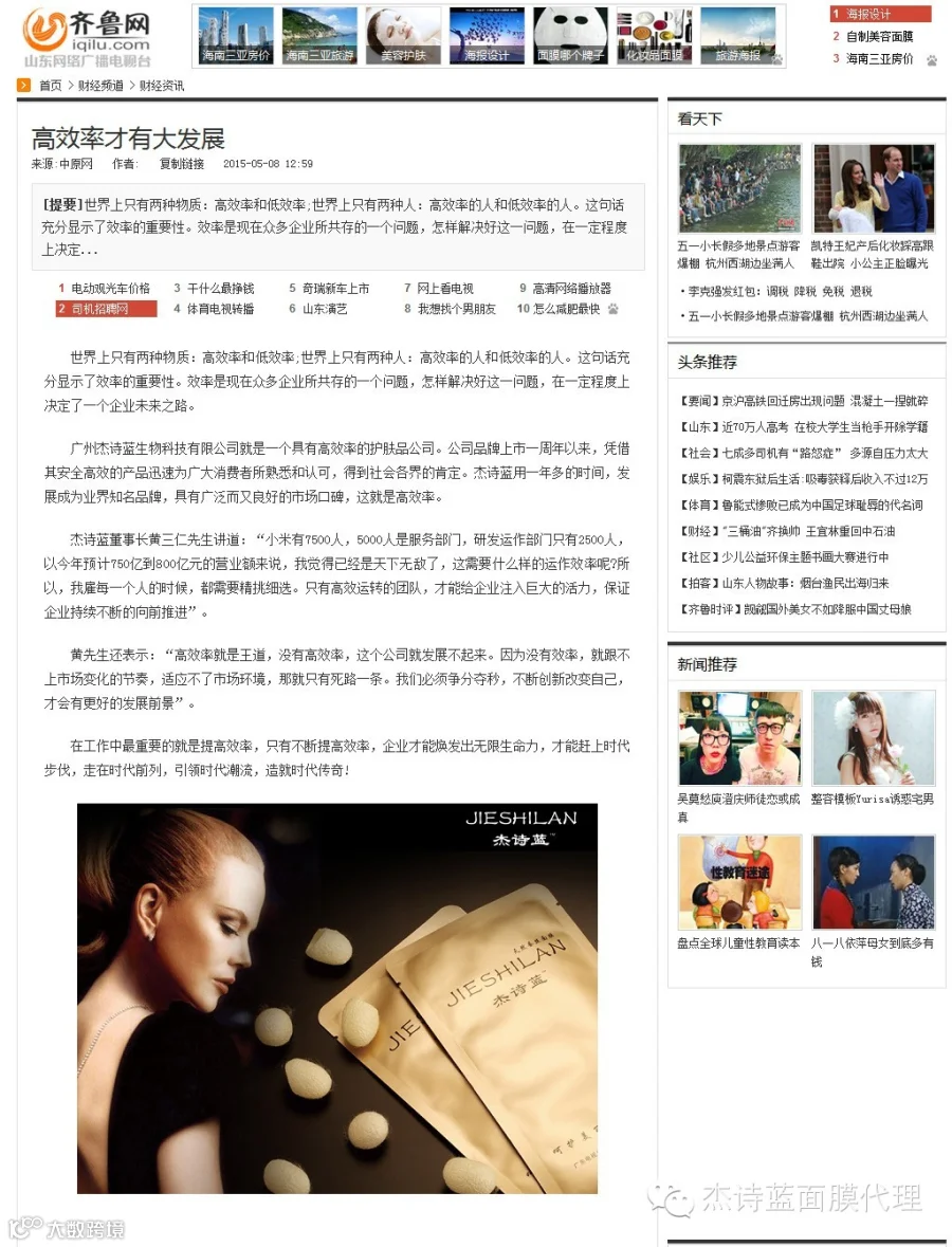 广州杰诗蓝生物科技有限公司就是一个具有高效率的护肤品公司。公司品牌上市一周年以来,凭借其安全高效的产品迅速为广大消费者所熟悉和认可,得到社会各界的肯定。杰诗蓝用一年多的时间,发展成为业界知名品牌,具有广泛而又良好的市场口碑,这就是高效率。