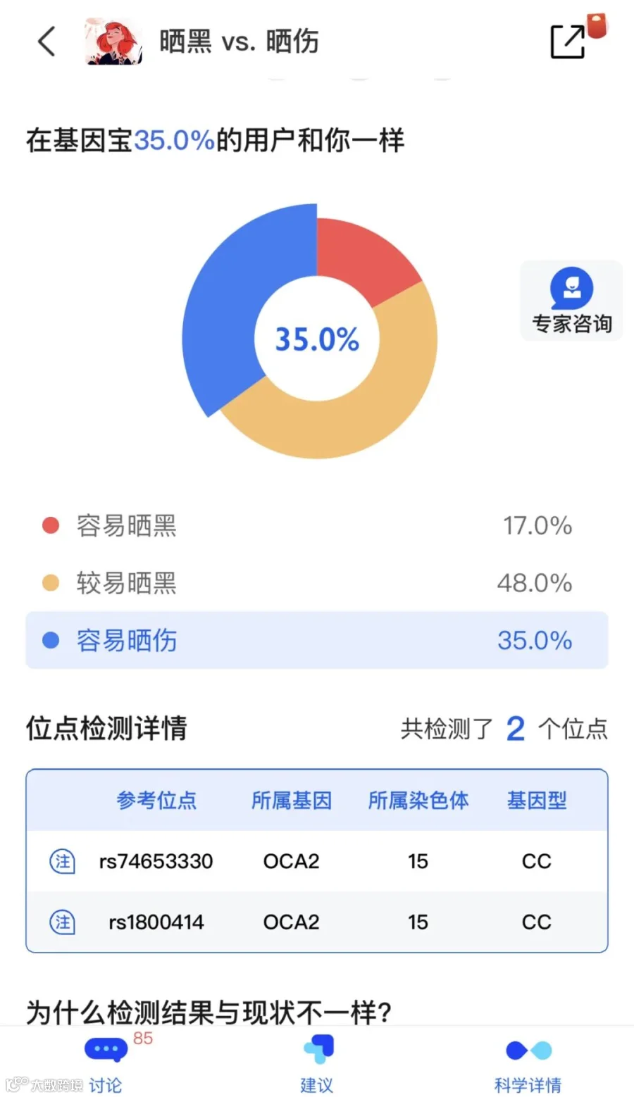 因为只有你的基因才决定着你接受多少紫外线照射时会开始释放过量的ROS,会激活多少成纤维细胞,最终影响多少蛋白的表达。这也是为什么生活中同样的照射下有些人比较容易晒黑,而有些人却依然肤白粉嫩,同样的吸烟,有些人活到99,有些人却被呼吸疾病缠身的重要原因之一。